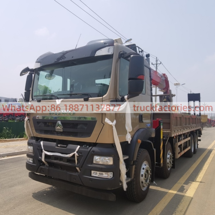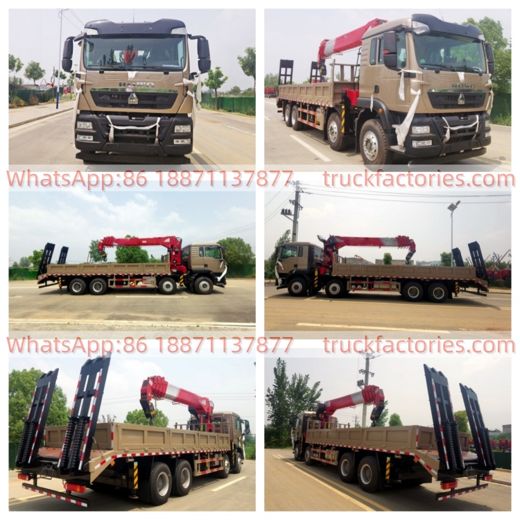 20.重汽豪沃前四后八4吨5节臂平板带爬梯随车起重卡车