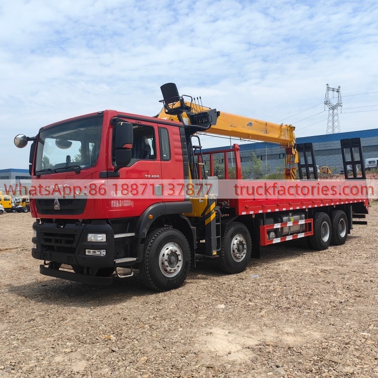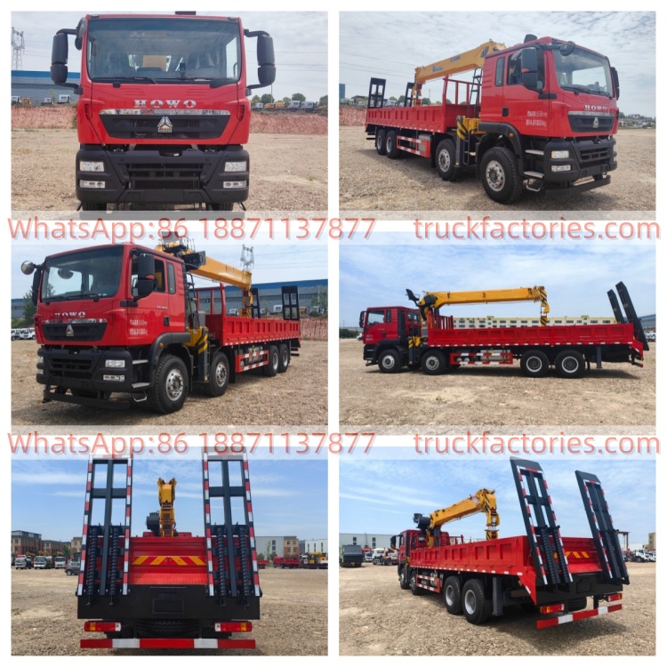 18.重汽豪沃前四后八4吨5节臂平板带爬梯随车起重卡车
