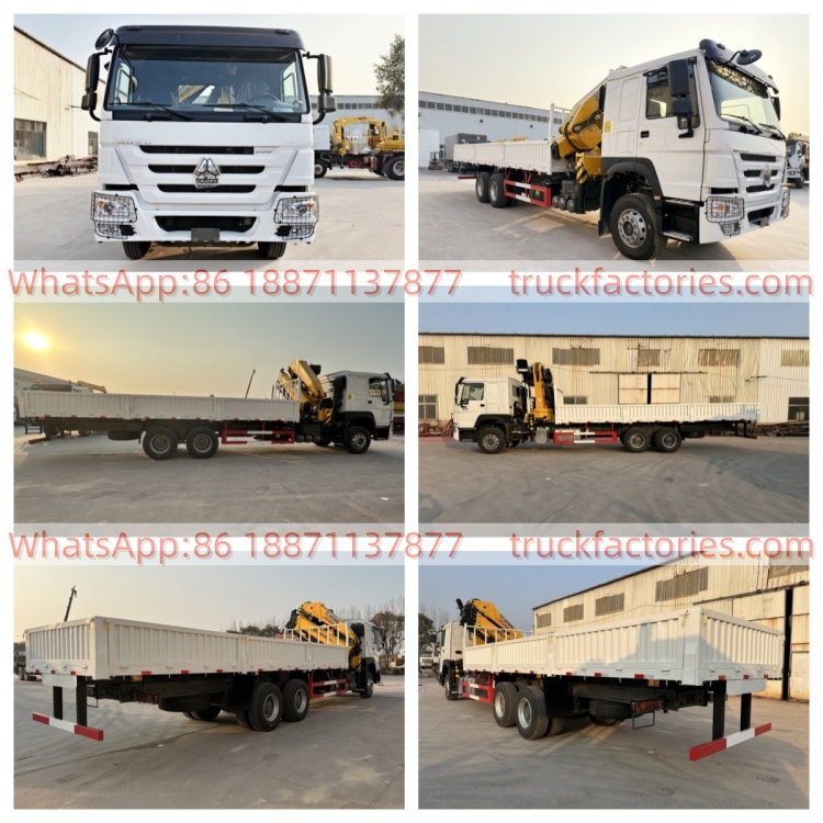 6×4折臂吊马槽货箱重汽\14、重汽豪沃白黄+12折+380马力带护灯罩随车起重卡车