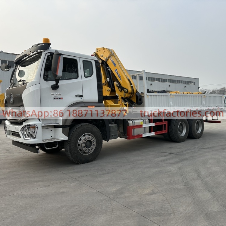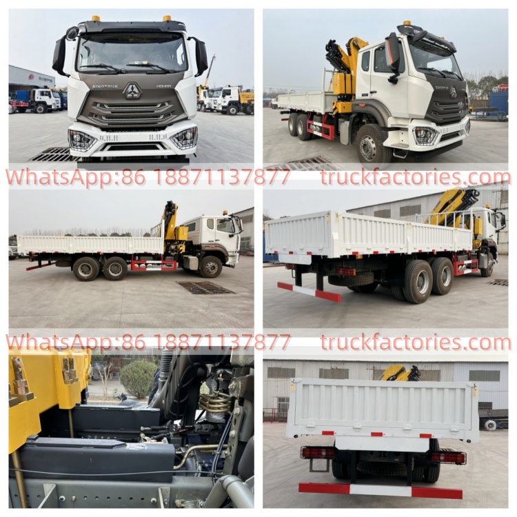 6×4折臂吊马槽货箱重汽\13、重汽豪沃白黄+200折+N系列340马力随车起重卡车
